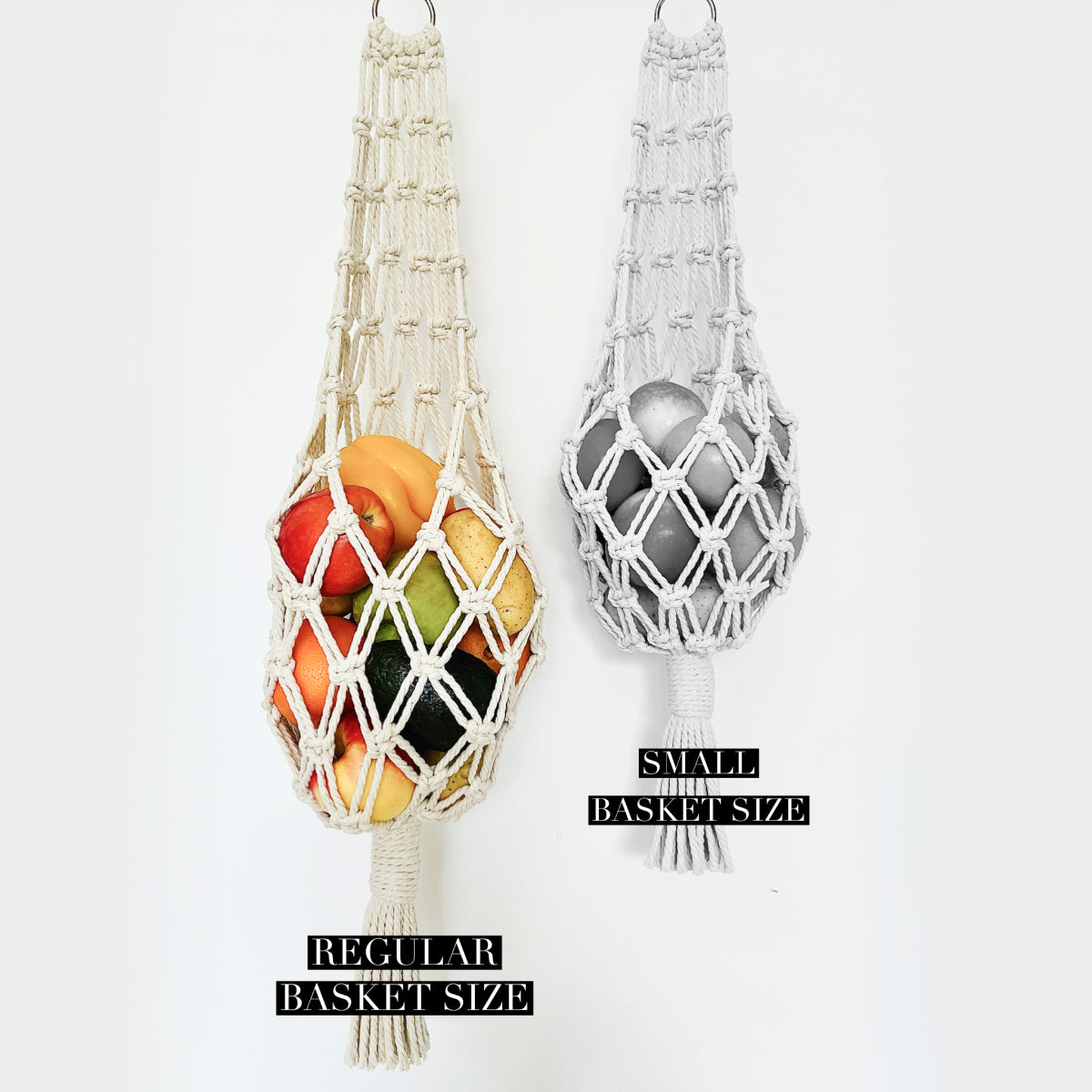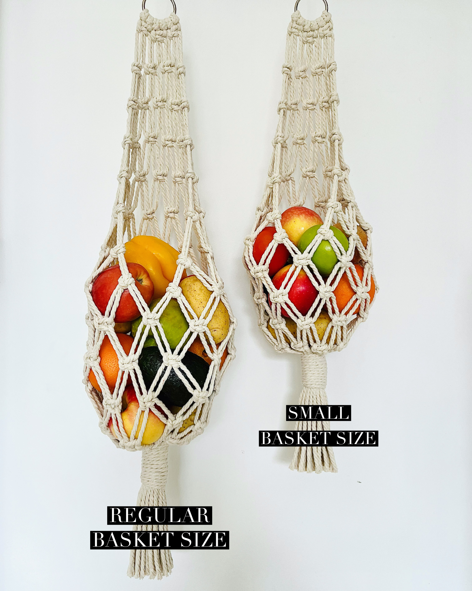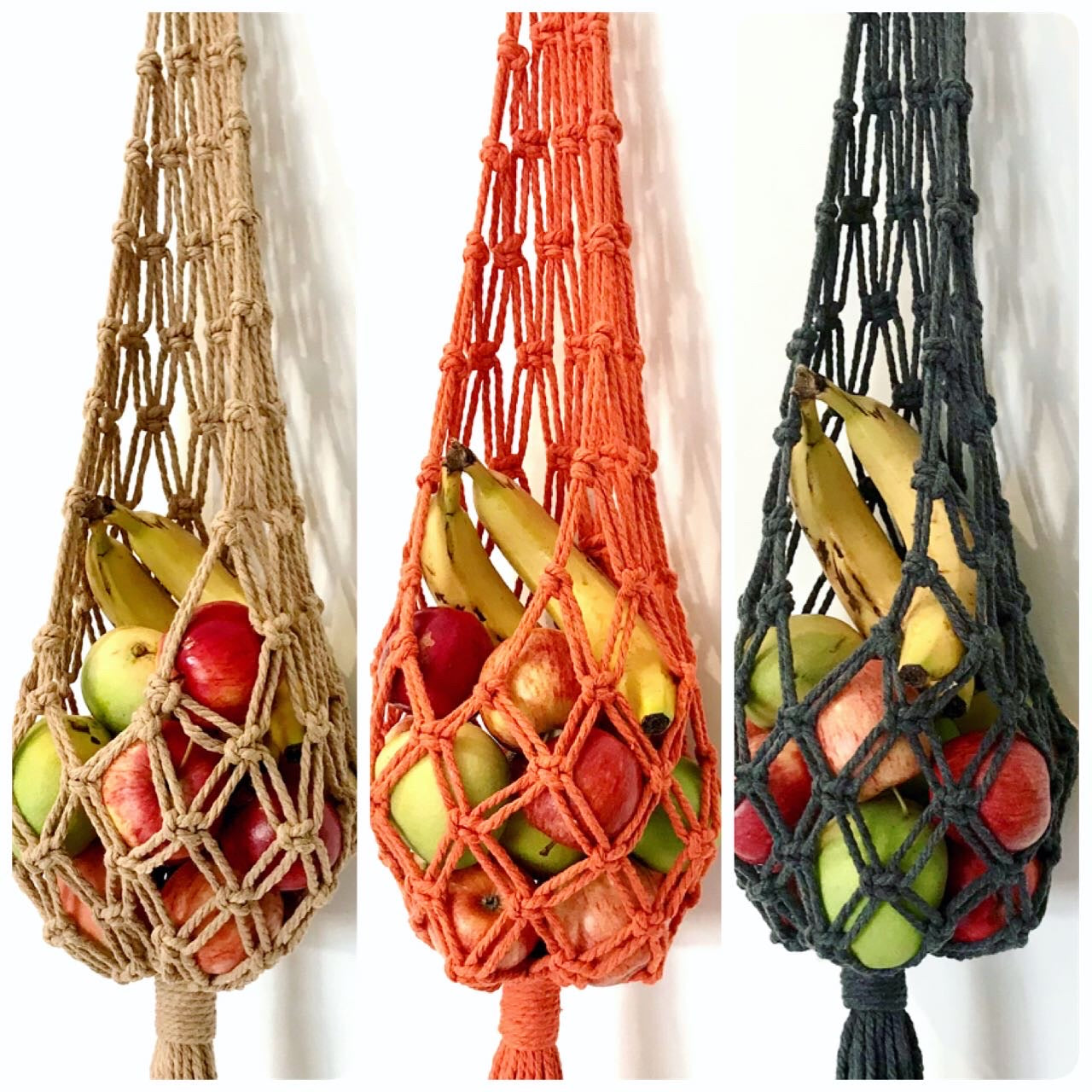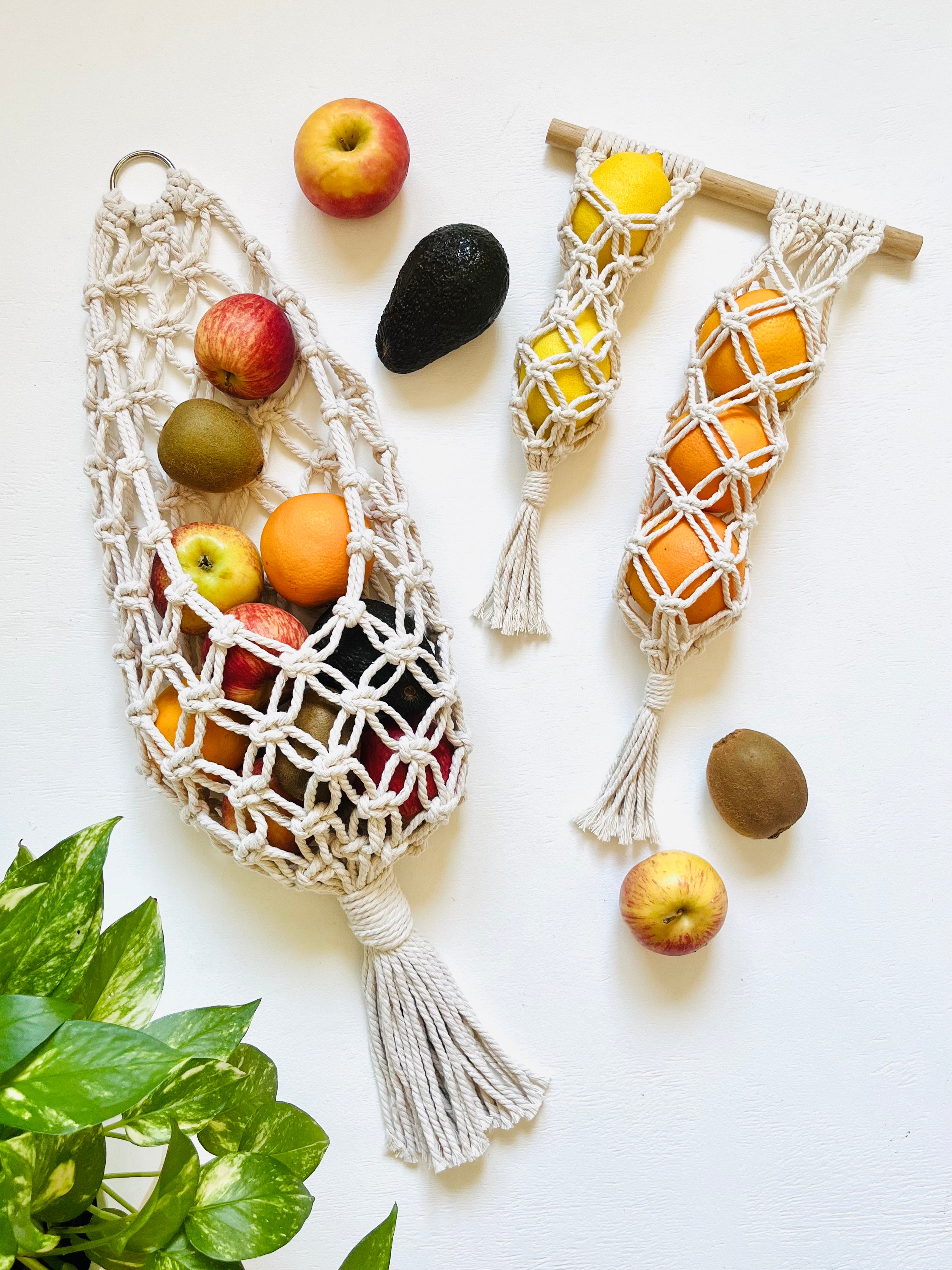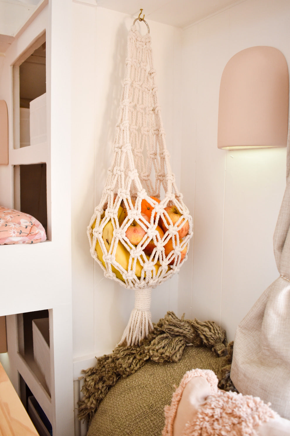 These macrame hanging baskets are especially practical when it comes to travelling in a camper or when you’re tight on space. Instead of taking up space on the table you can now just hang your fruit or veggies on the wall.