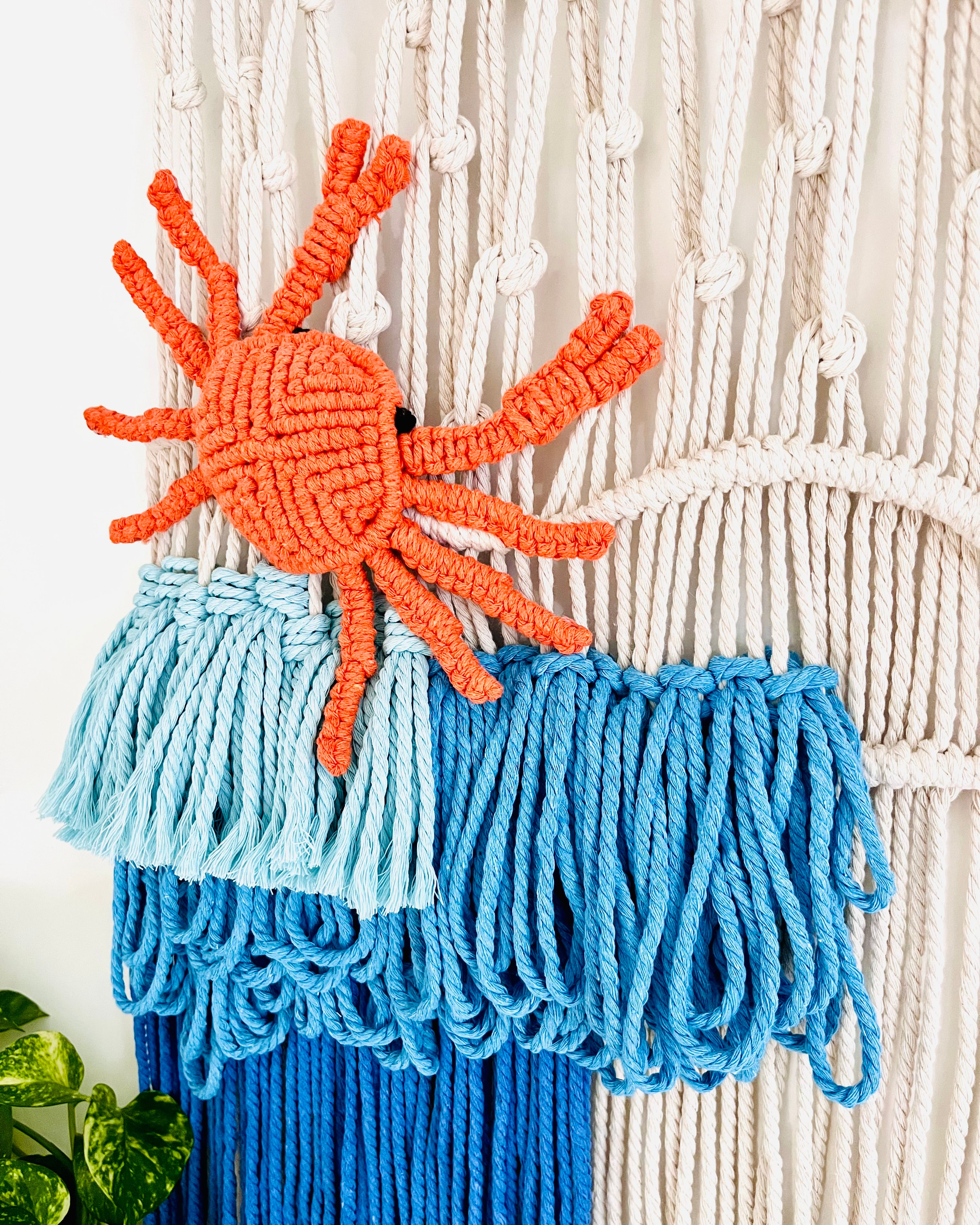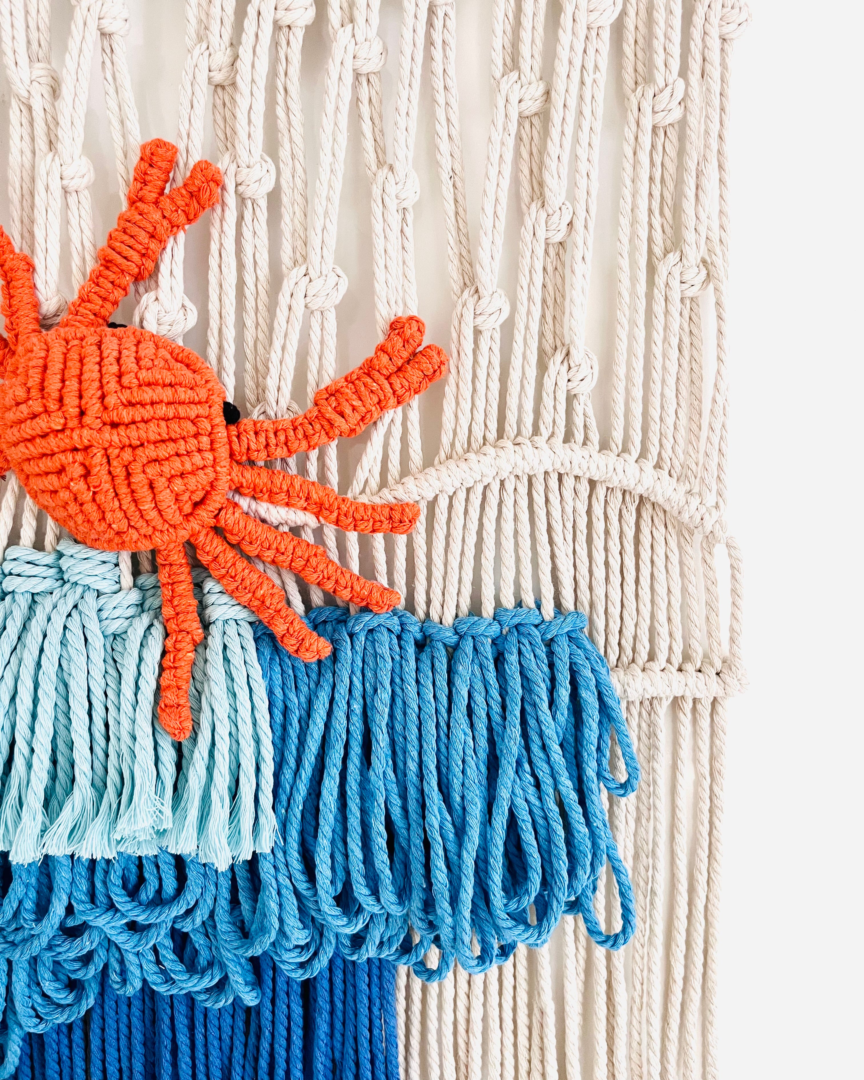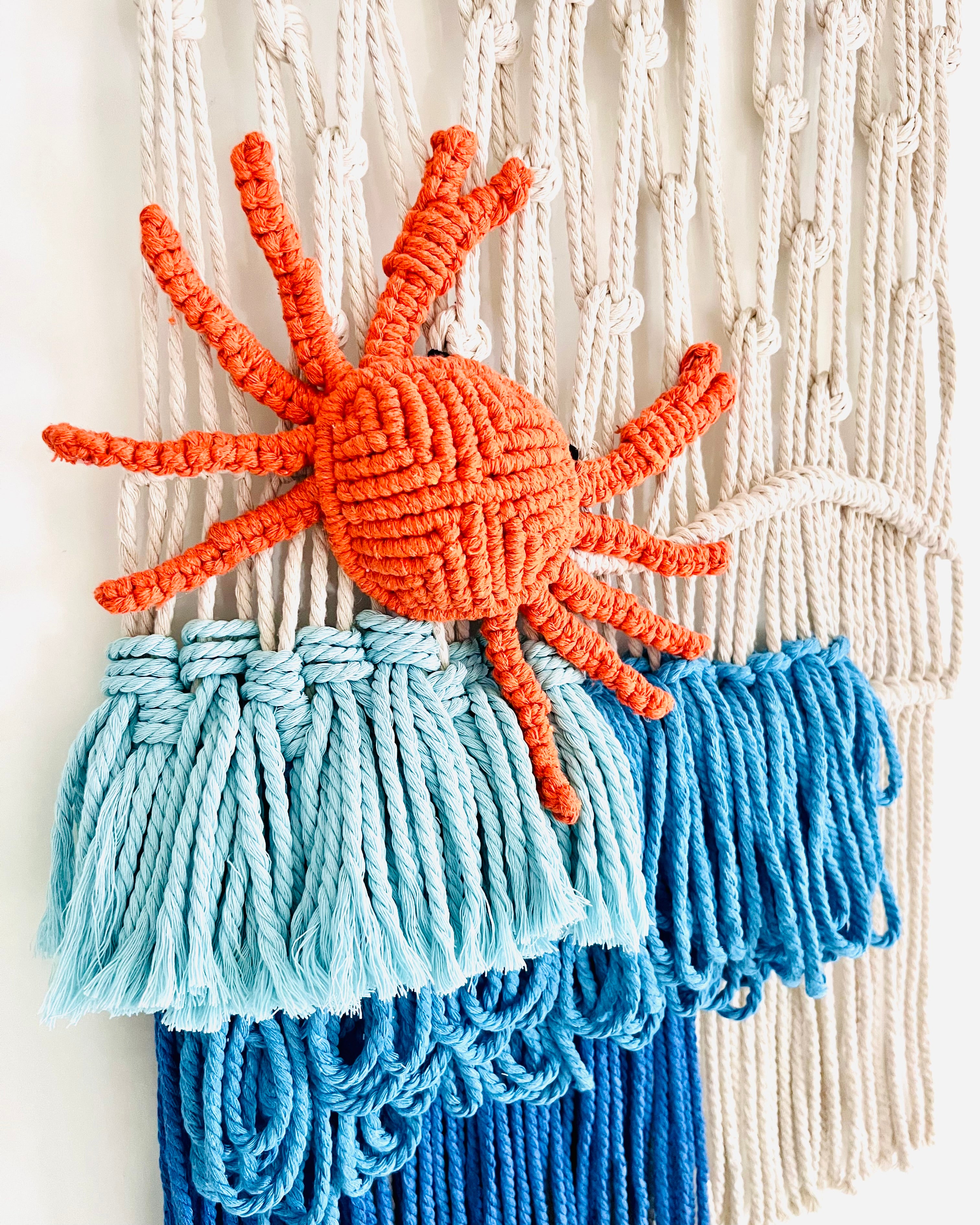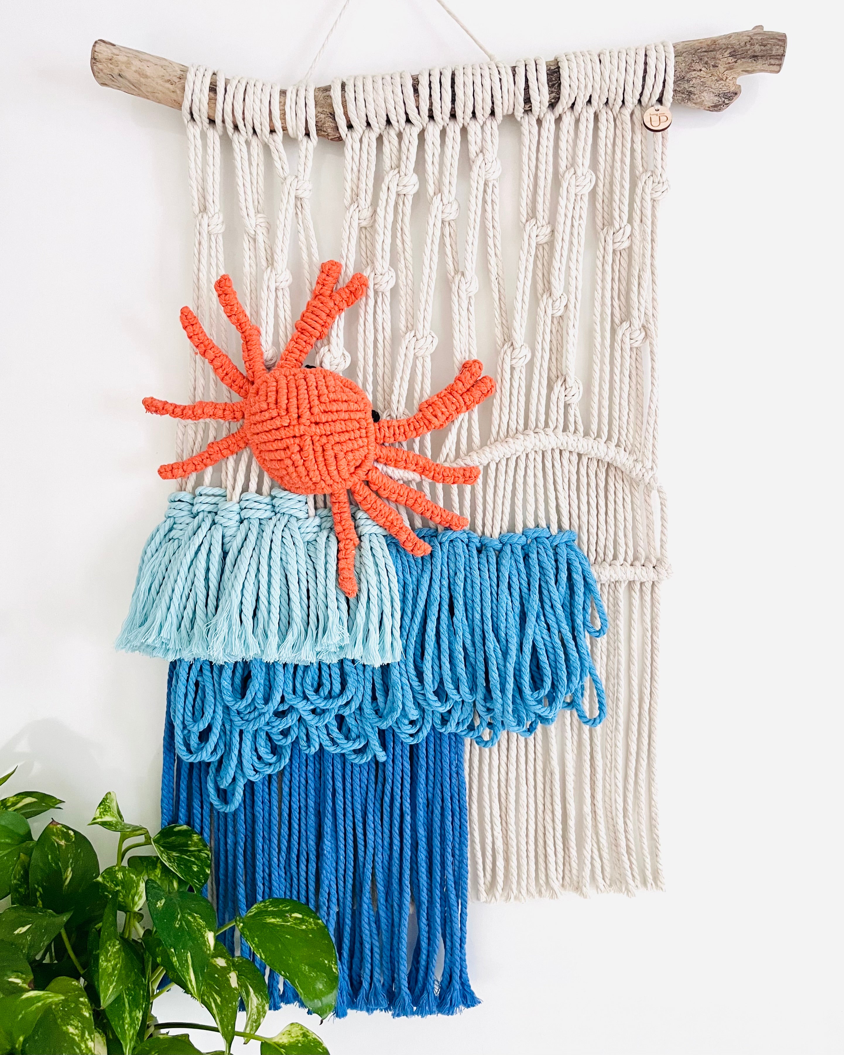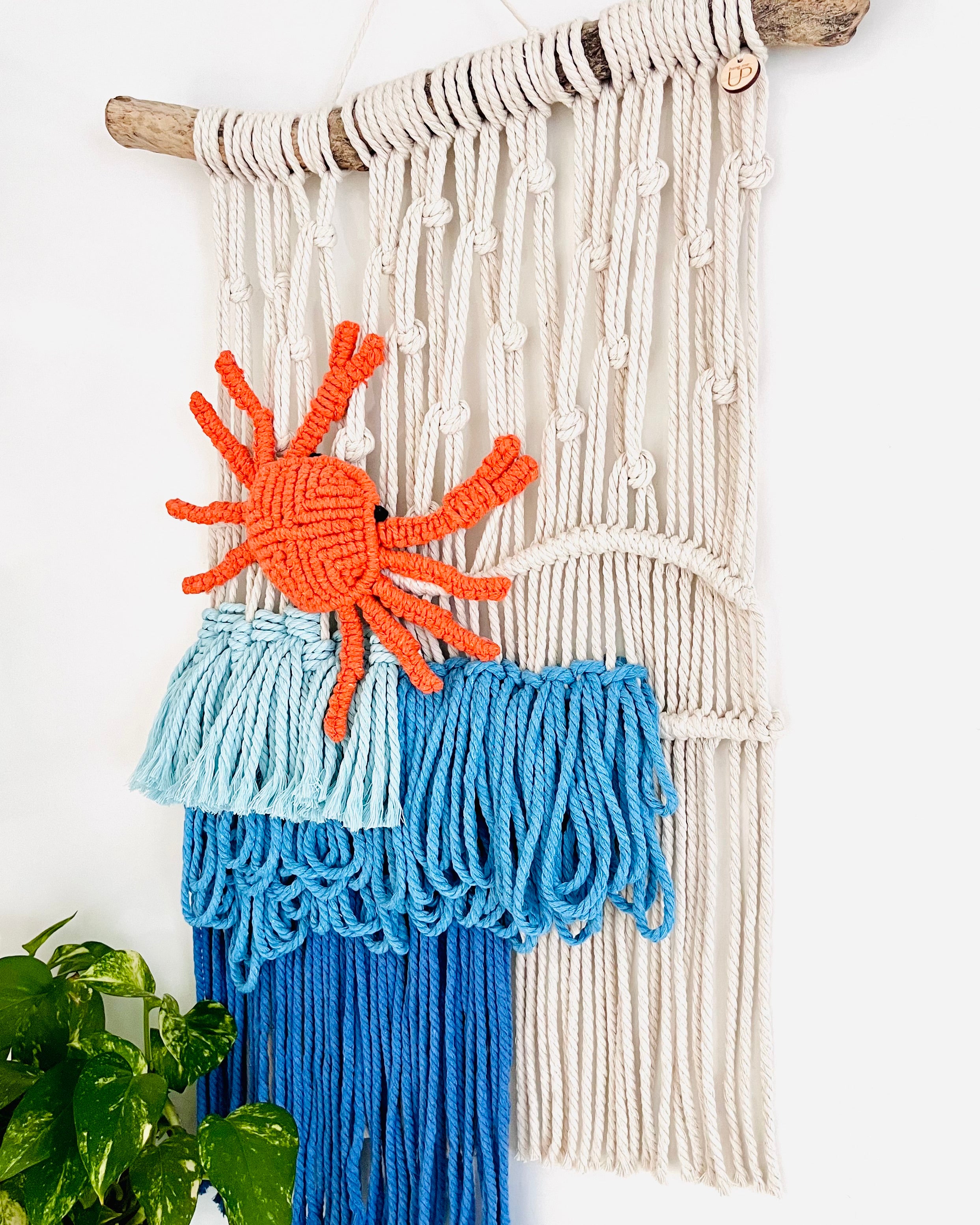 Soft sandy Beaches, clear blue waters and crabs enjoying life in their natural environment. This is the picture that inspired this "Crab" Macrame Wall Hanging.