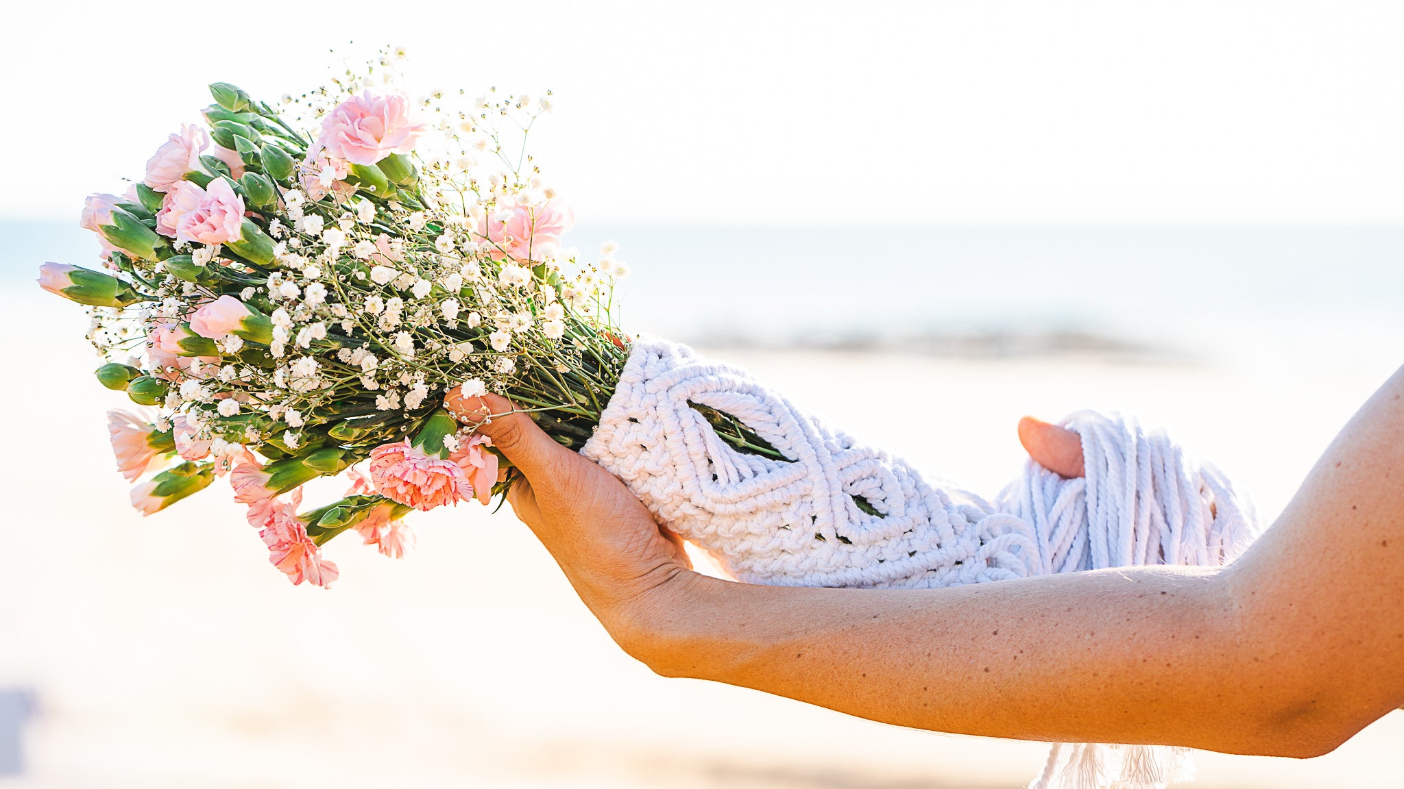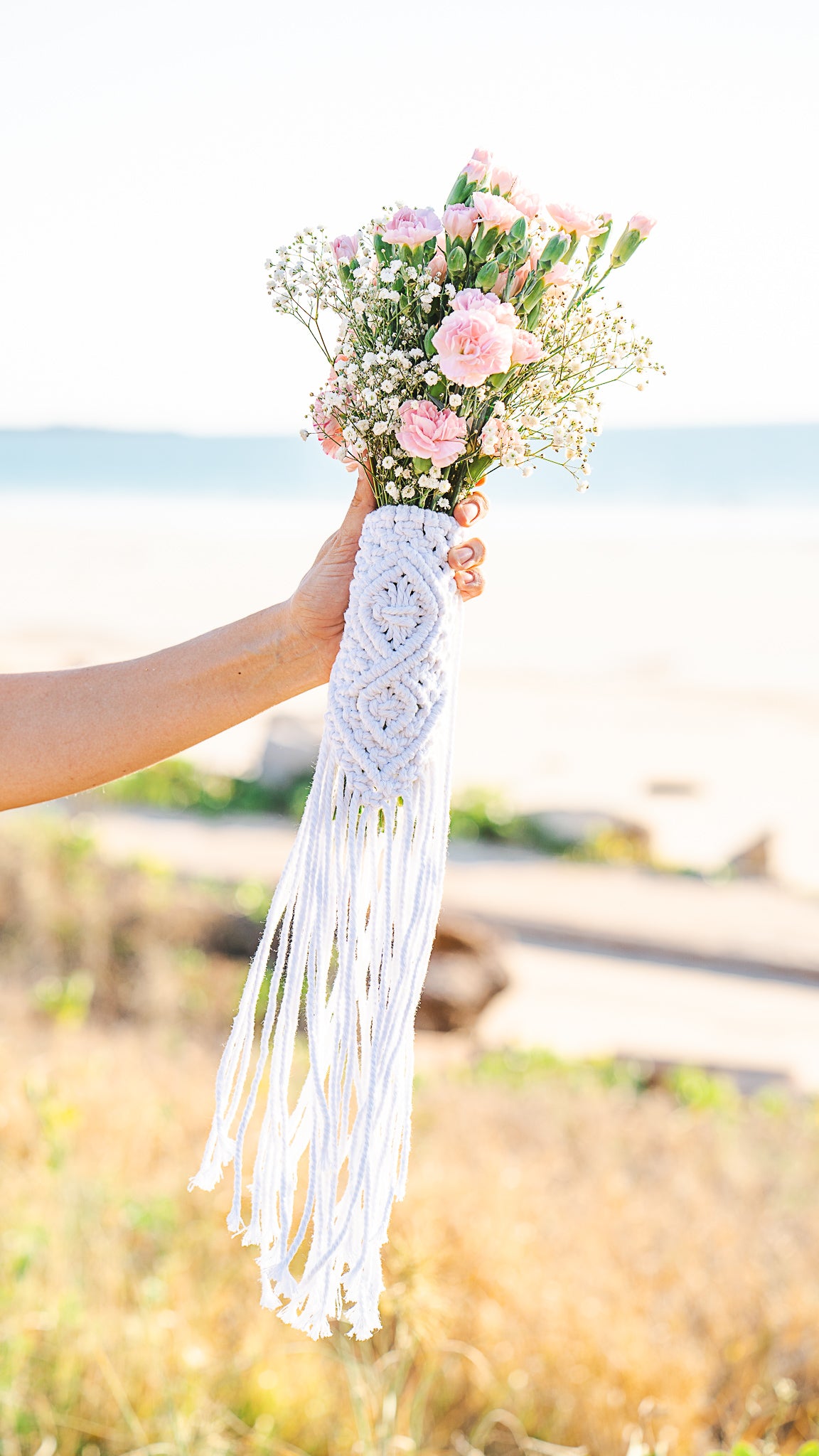 These stunning macrame bouquet wraps will add a memorable touch to any flower bouquet and complete your own wedding theme.