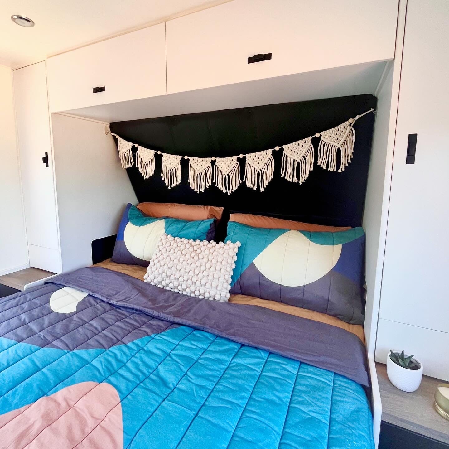 - Choose between various lengths to suite your space. If you are looking to add this bunting as an accessory over your bed head the 160cm lengths is perfect for a queen bed and 140cm length ideal for a double bed, larger sizer are ideal for caravan seating spaces