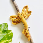 - Detailed hand-knotted macrame dragonfly in mustard cotton