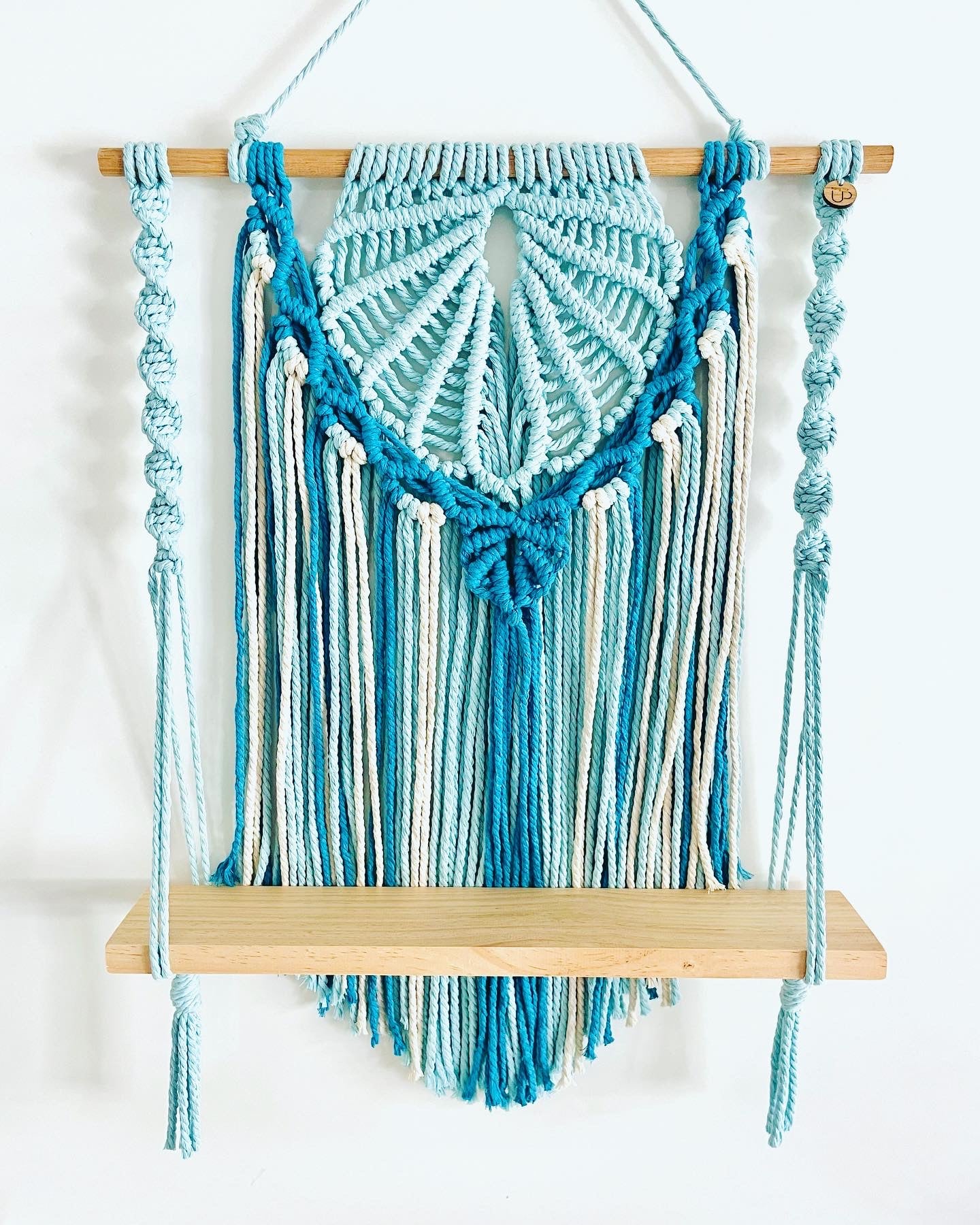 Feature all your beach finds, small plants or even essential oils in one spot with this clam shell inspired, handmade macrame shelf.