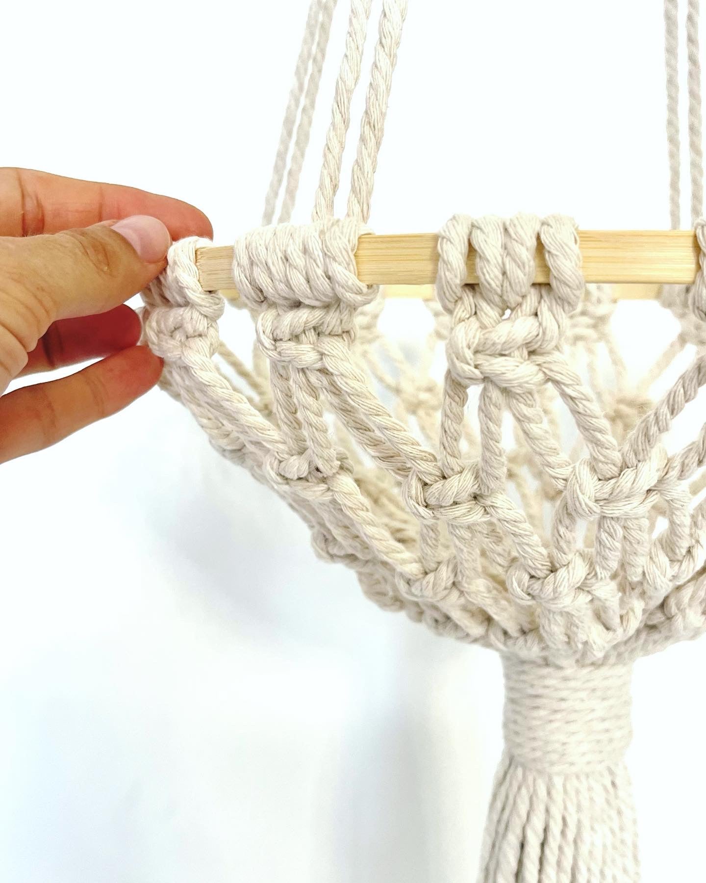 - Made of 100% recycled 5mm natural cotton cord and natural wooden bamboo rings