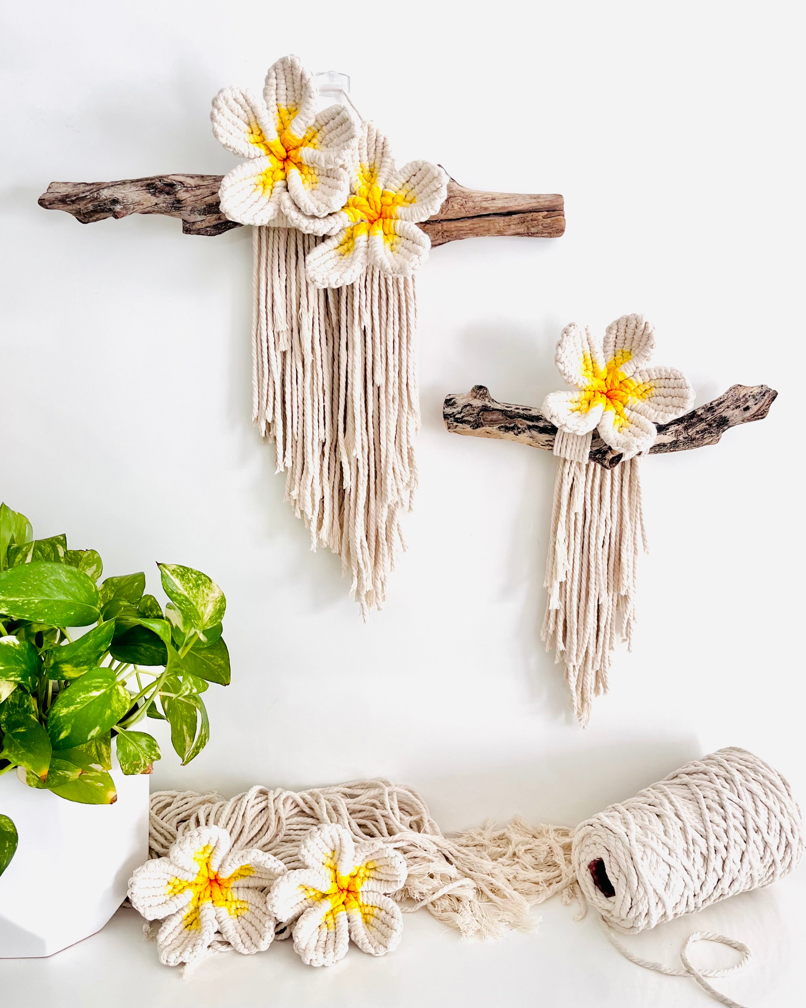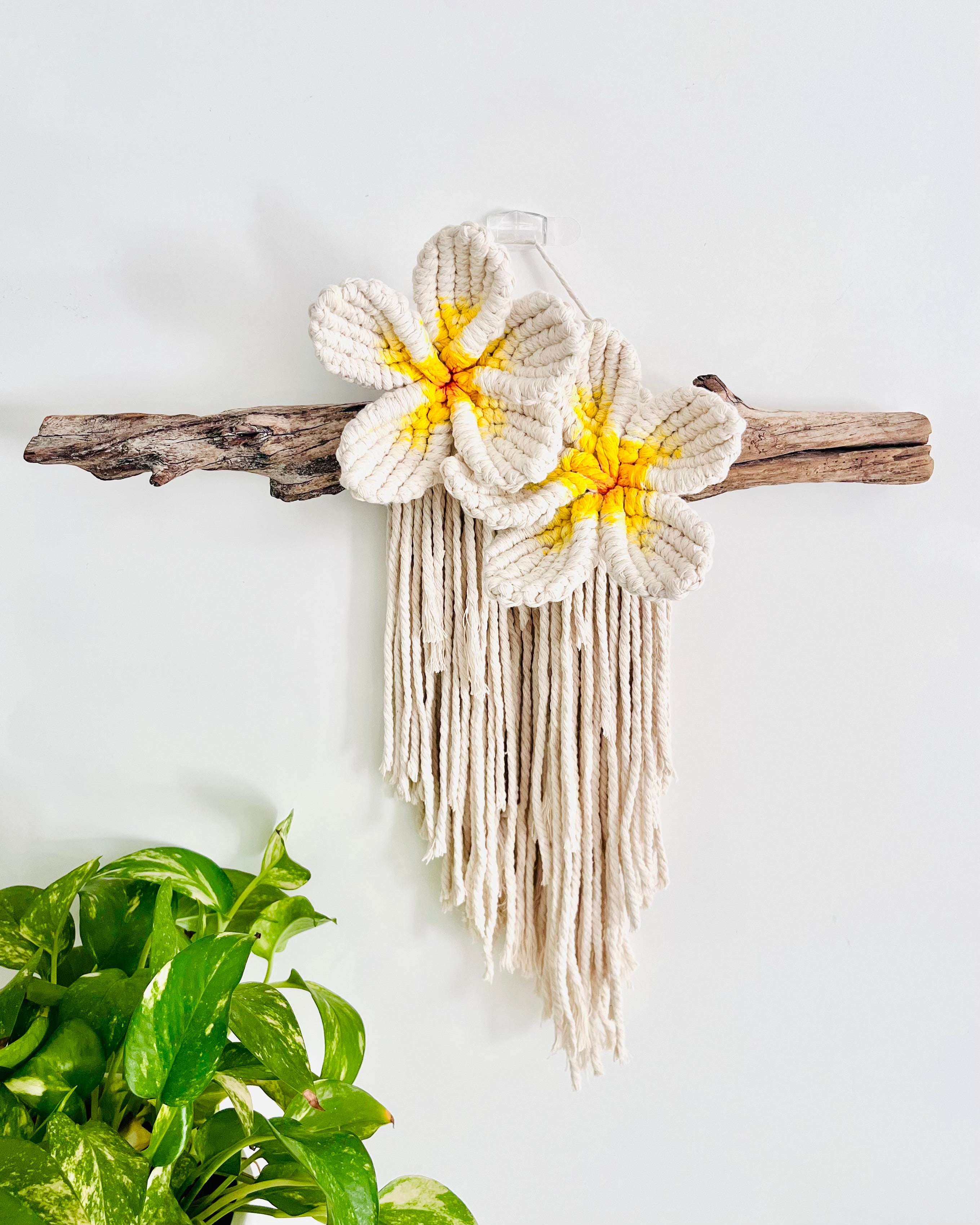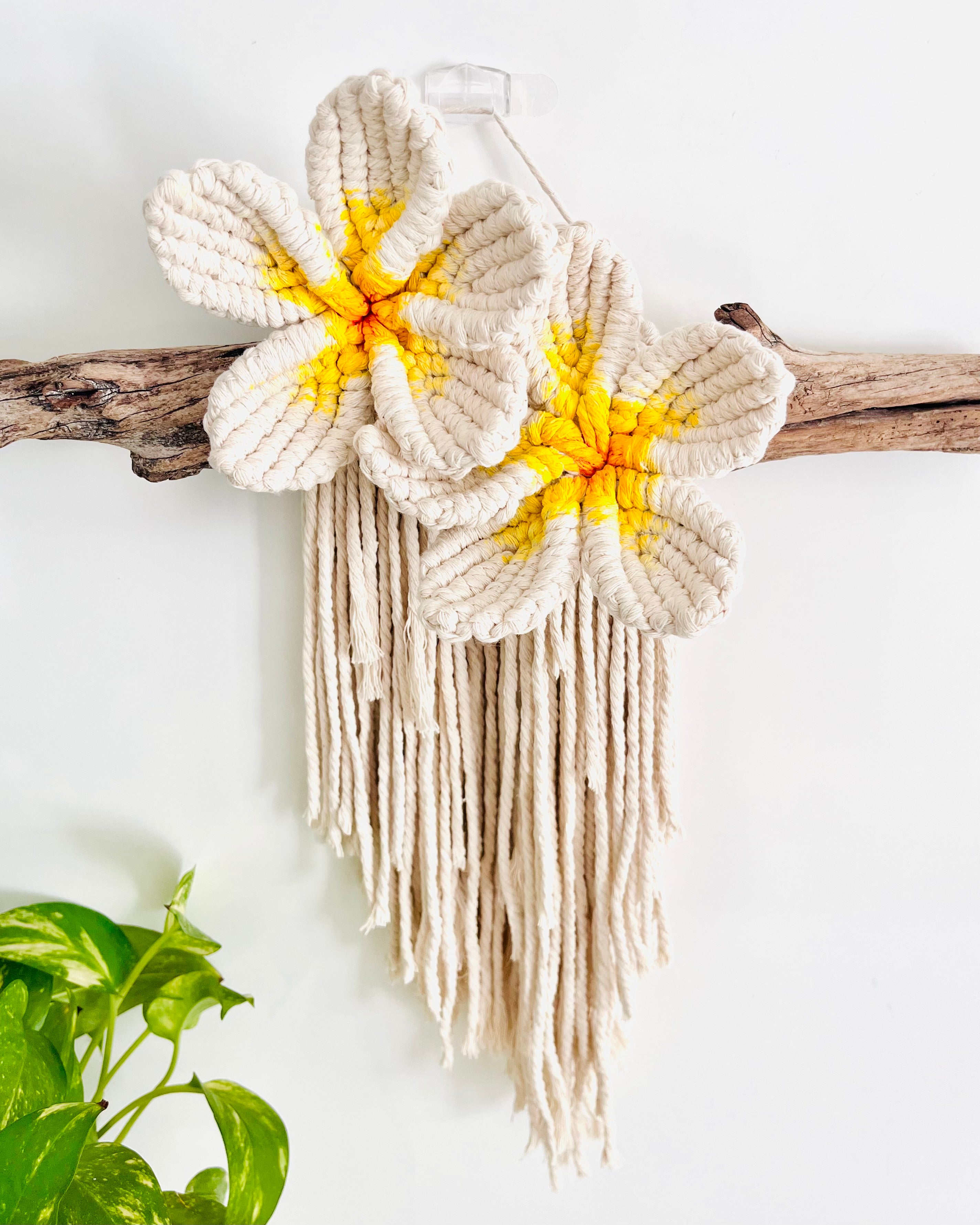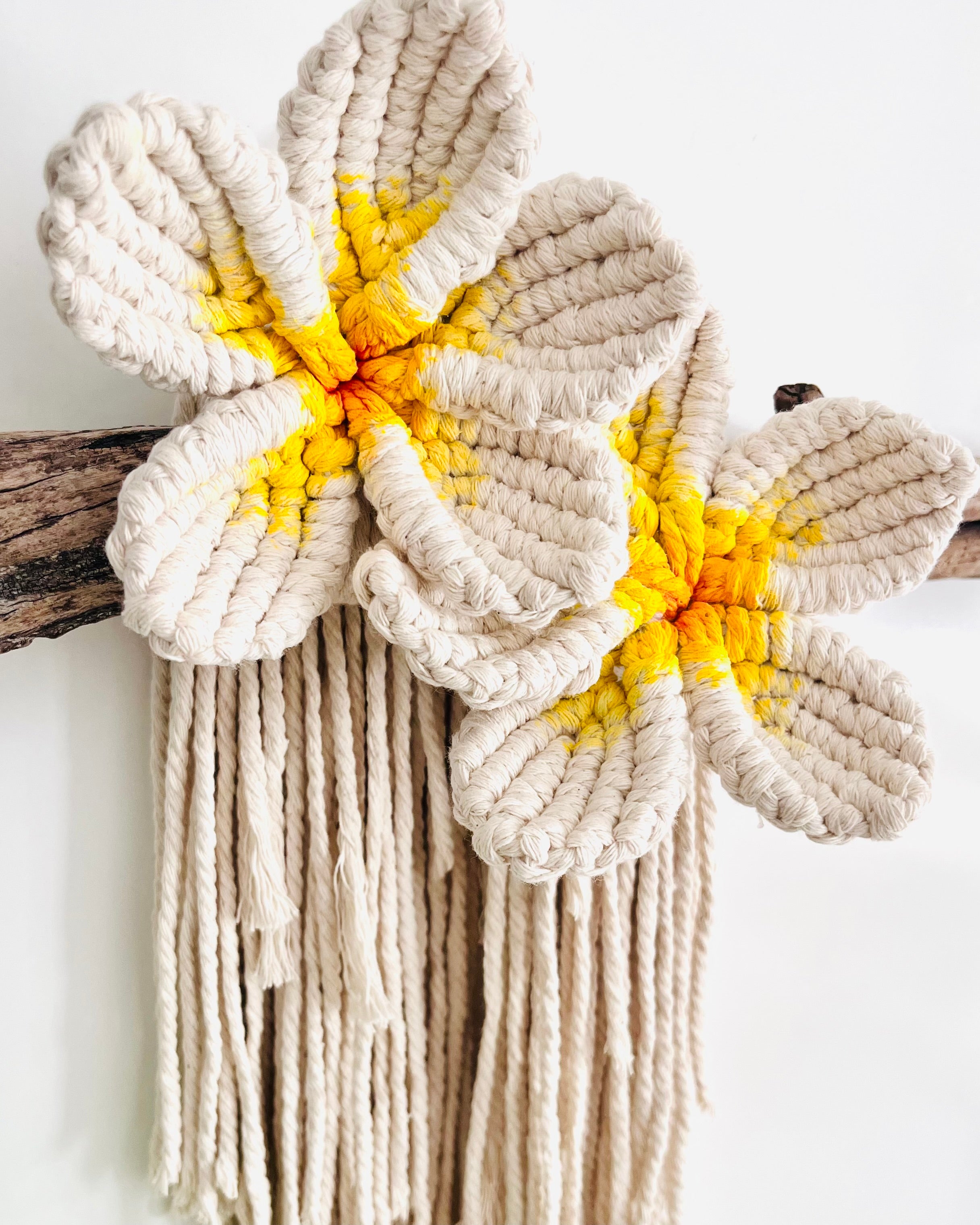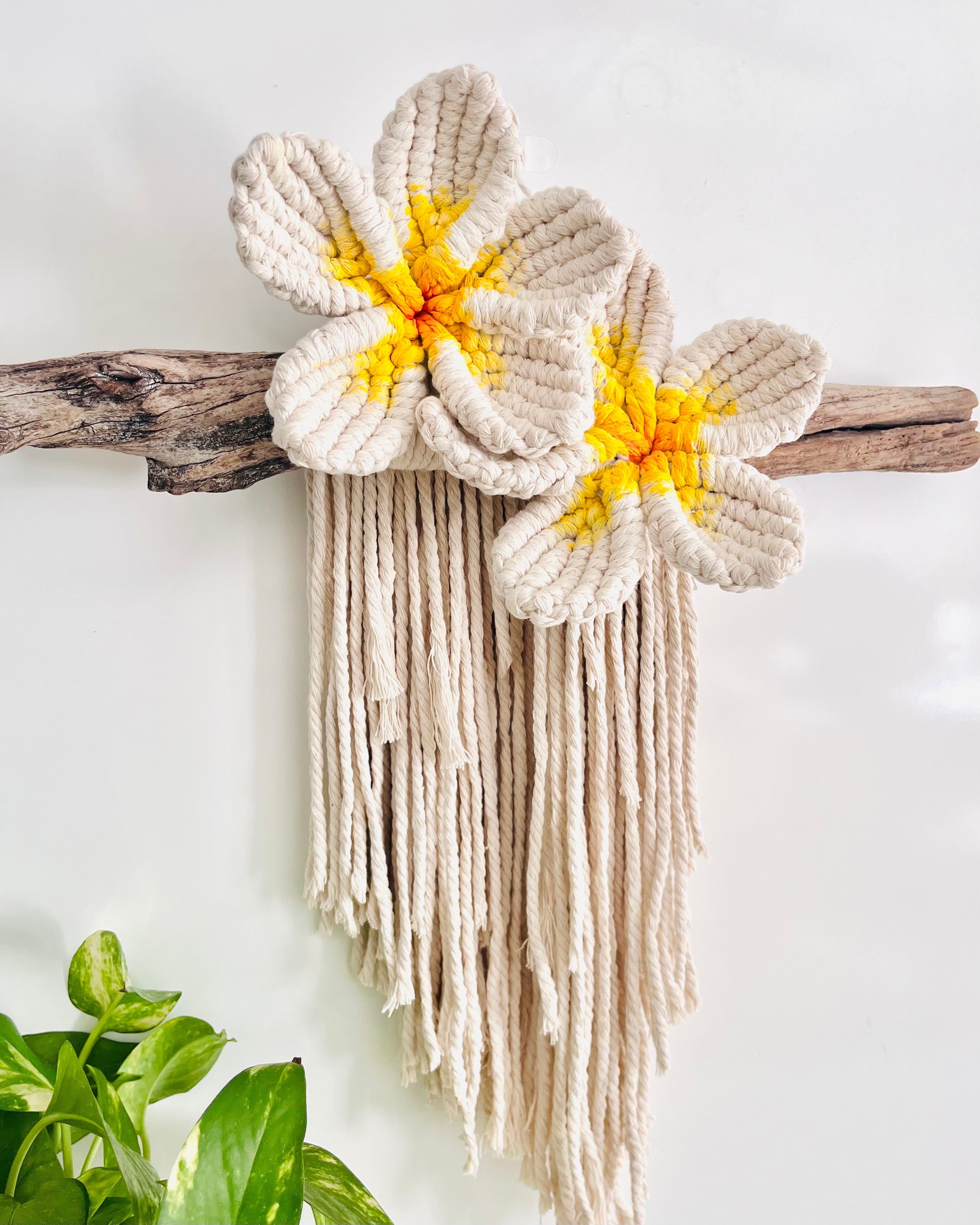Inspired by the fragrant frangipani trees of Broome, this stunning macrame wall hanging captures the essence of tropical serenity. Soft textures and subtle detailing make the “Frangipani Flower” a graceful statement piece—perfect for bringing a breath of coastal calm into your space.