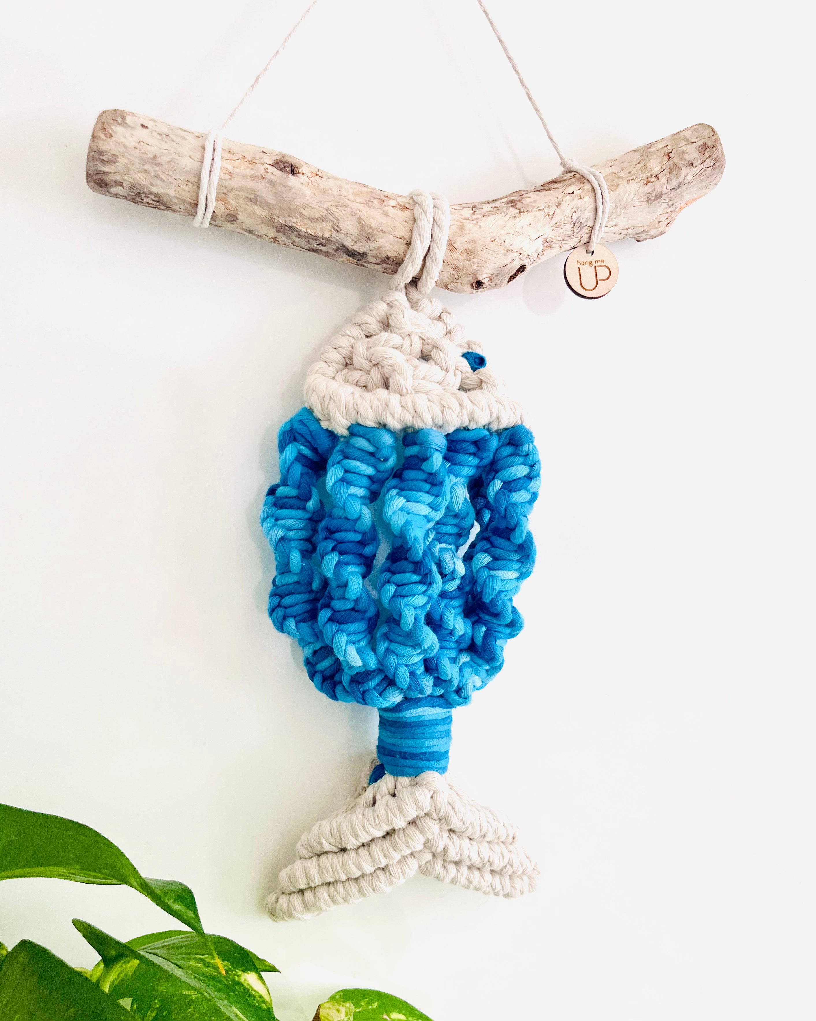 - Detailed macrame fish using exquisite hand died cotton cord giving it a truly unique look