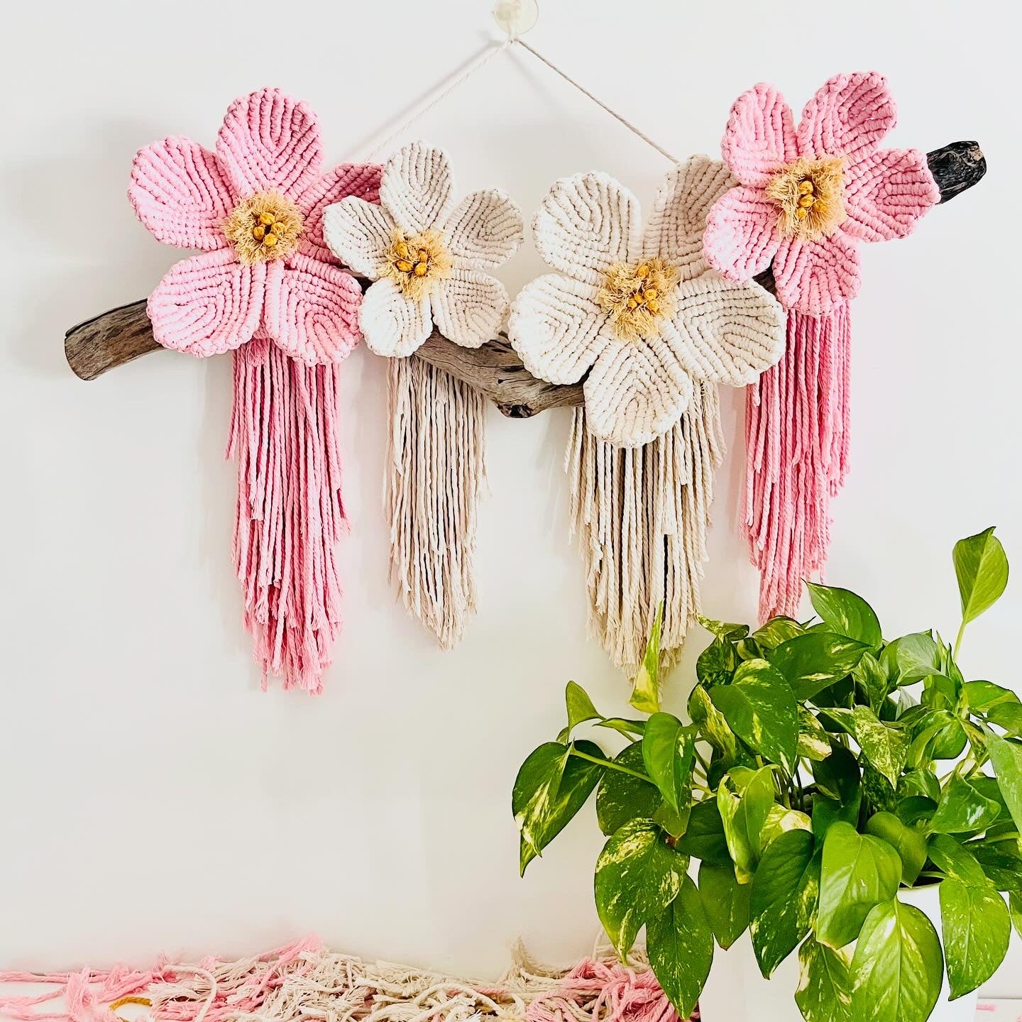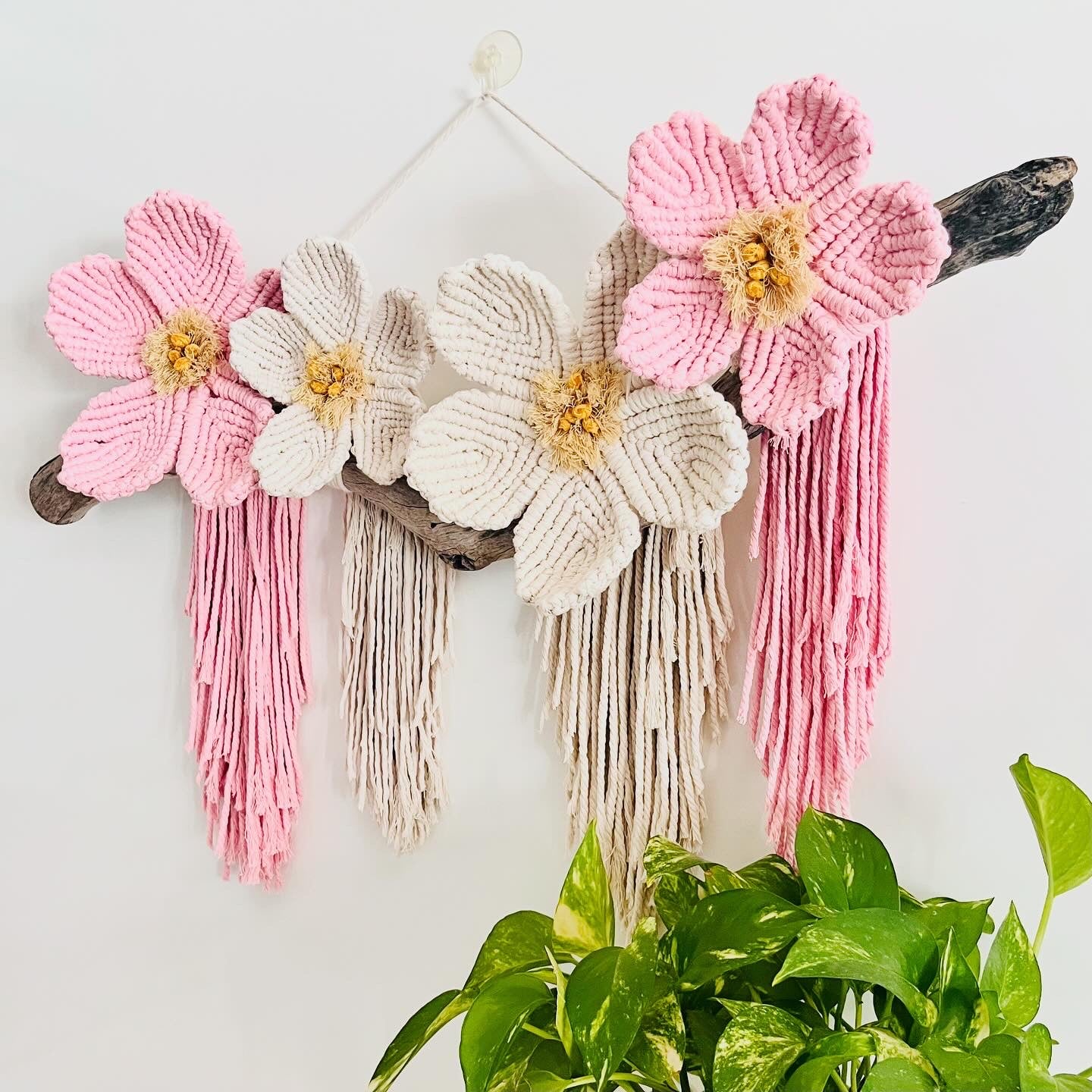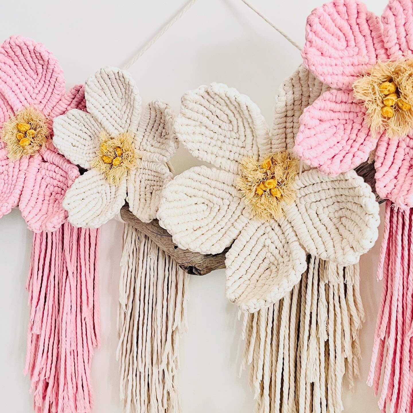 Soft neutral tones and various textures are the features of this stunning "Rose Flower" macrame wall hanging which will add a beautiful subtle eye catcher to your living space.