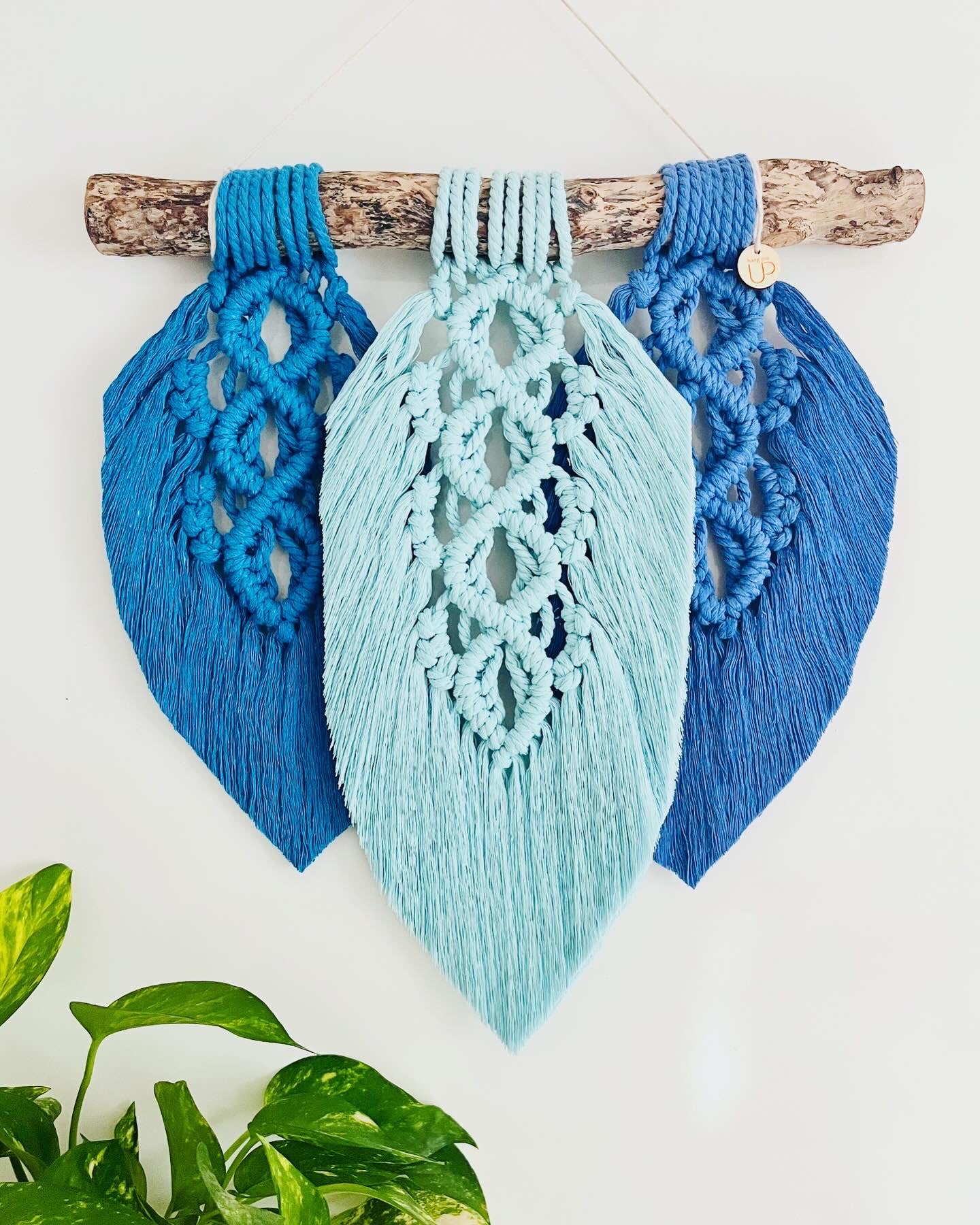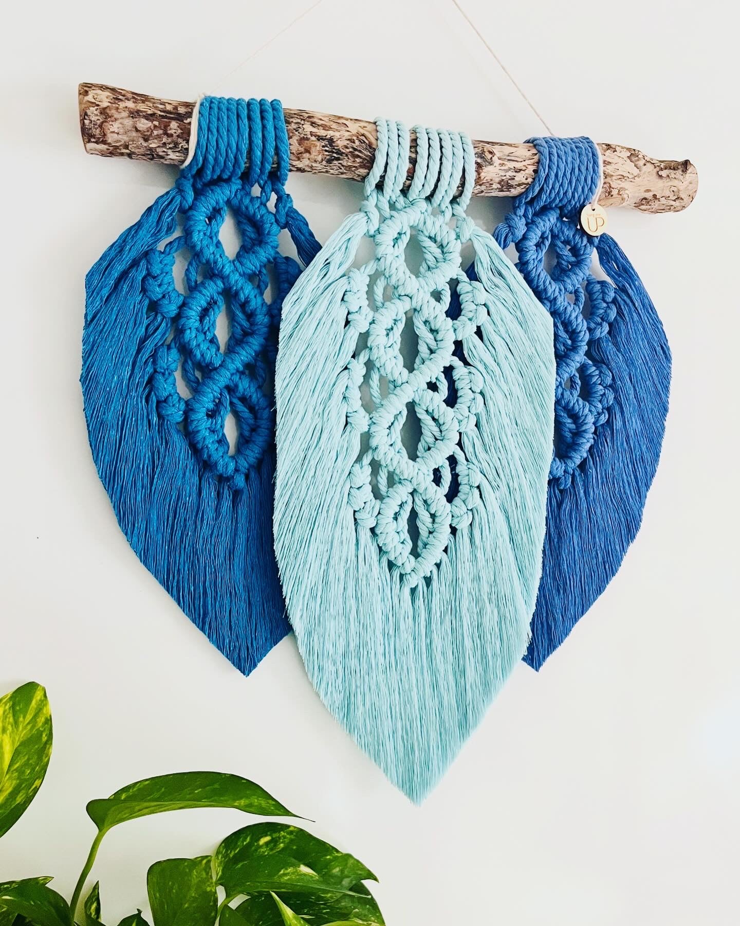 Trio of Diamond Feather Wall Hanging - Blue Tones