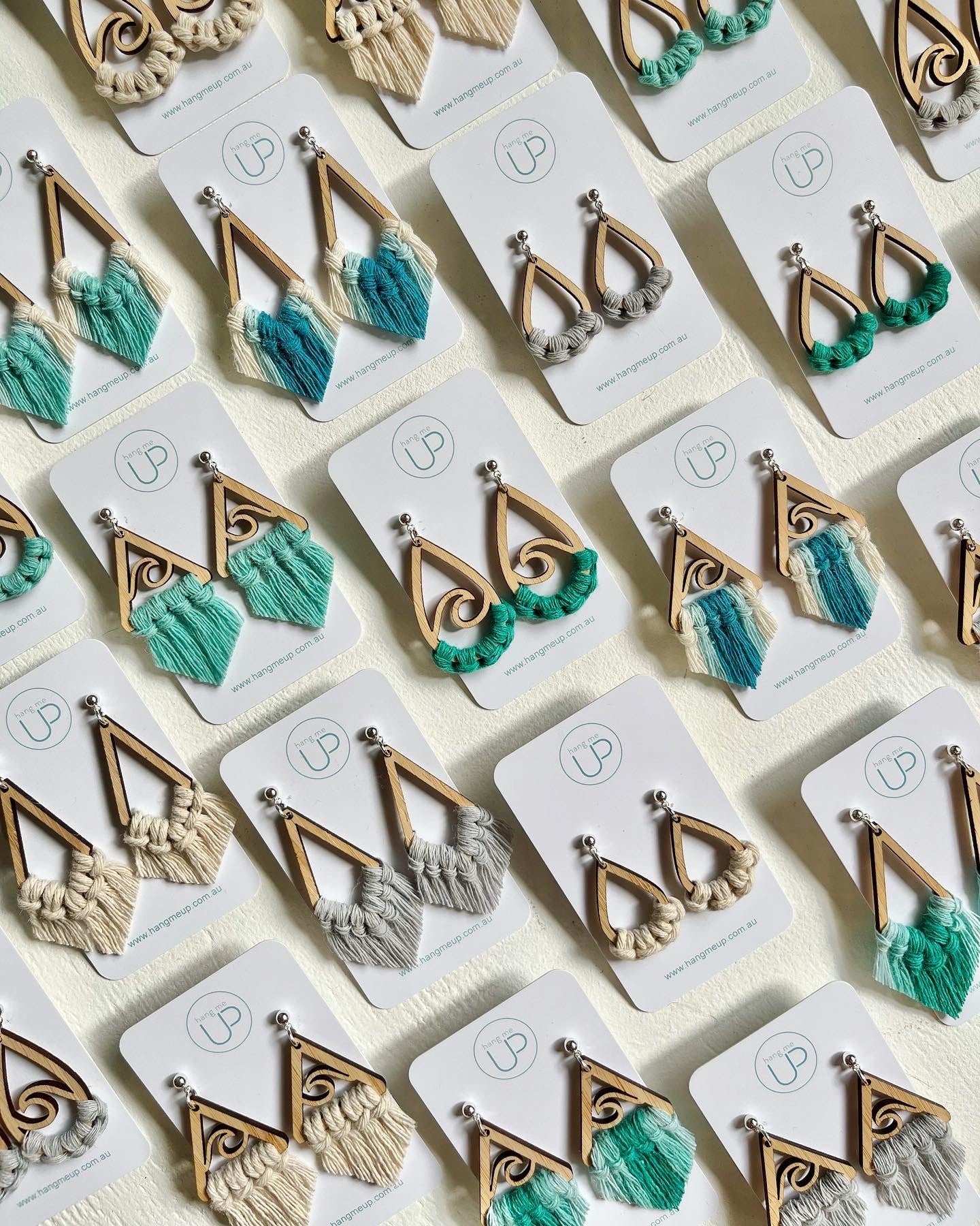 Our macrame earring collection will do exactly that! Inspired by the endless beaches, crushing waves and scattered driftwood on shore, this earring design will turn heads and is a definite eye-catcher.
