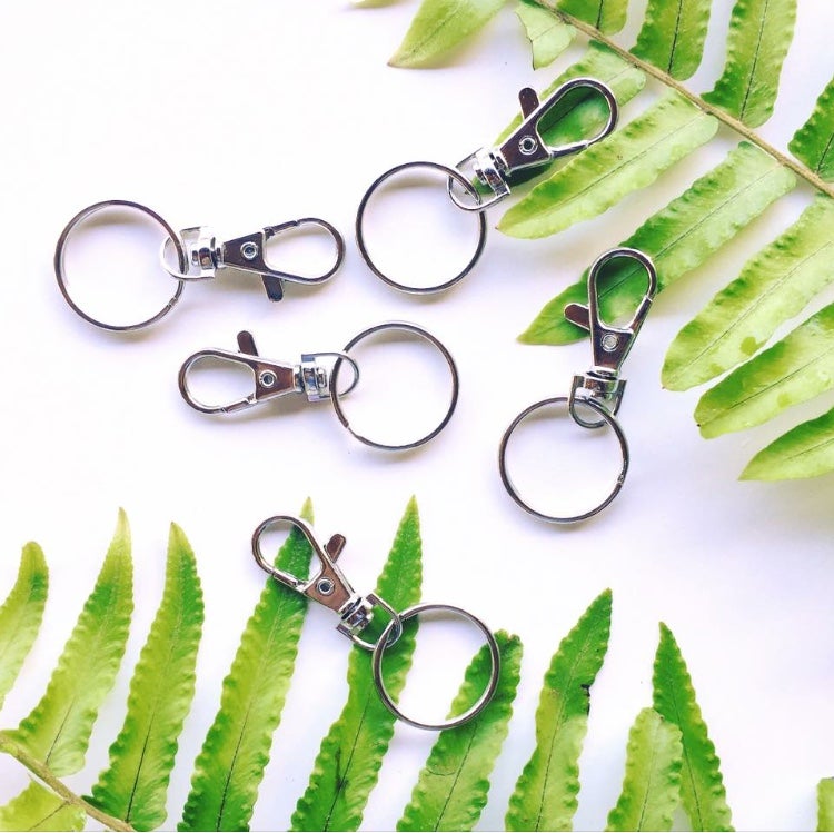 Make you own macrame key chain with these alloy swivel key rings. Ring diameter is 2.5cm and has lobster clasp attached.