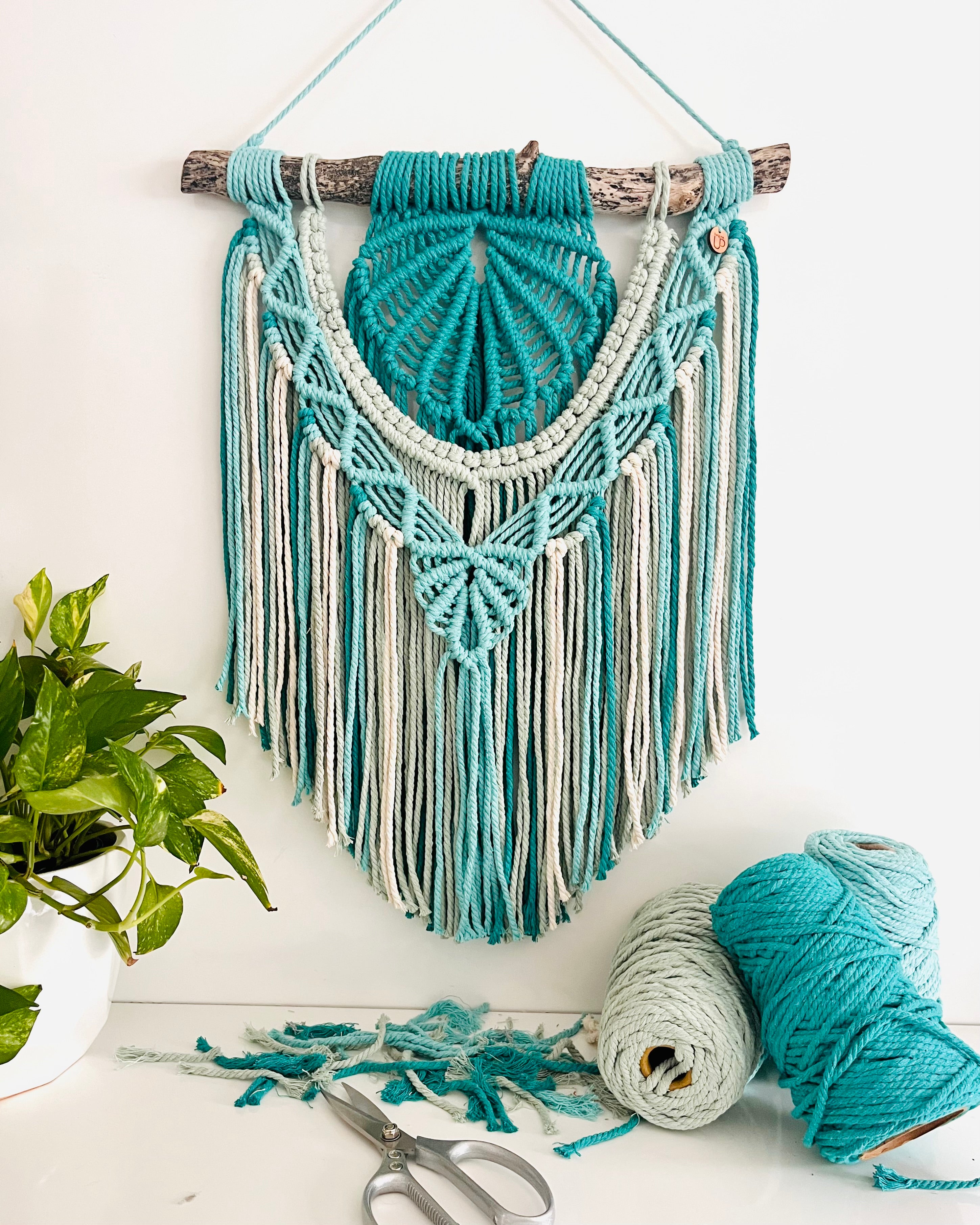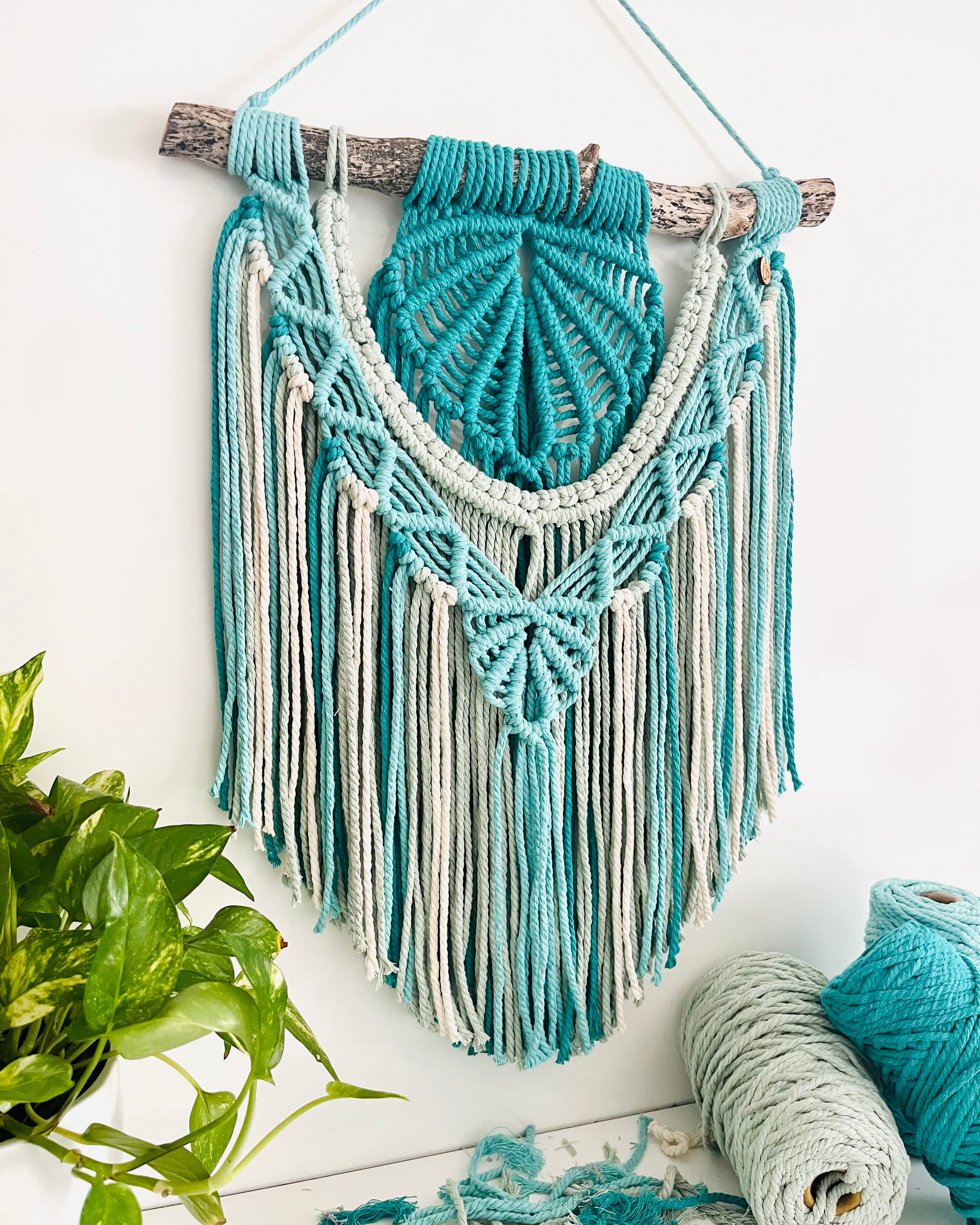 Ocean wind, soft beaches, turquoise waters, scattered driftwood, this is the picture that inspired the "Ocean Breeze" Macrame Wall Hanging.