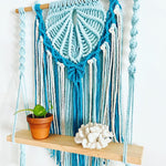 Feature all your beach finds, small plants or even essential oils in one spot with this clam shell inspired, handmade macrame shelf.