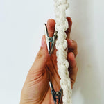 - 5-10 easy to use, stainless steel clips are integrated securely in a modern macrame pattern