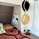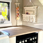 This macrame wall storage caddy is especially practical when it comes to travelling in a camper or when you’re tight on bench space. Instead of taking up space on the table you can now just hang it all on the wall.