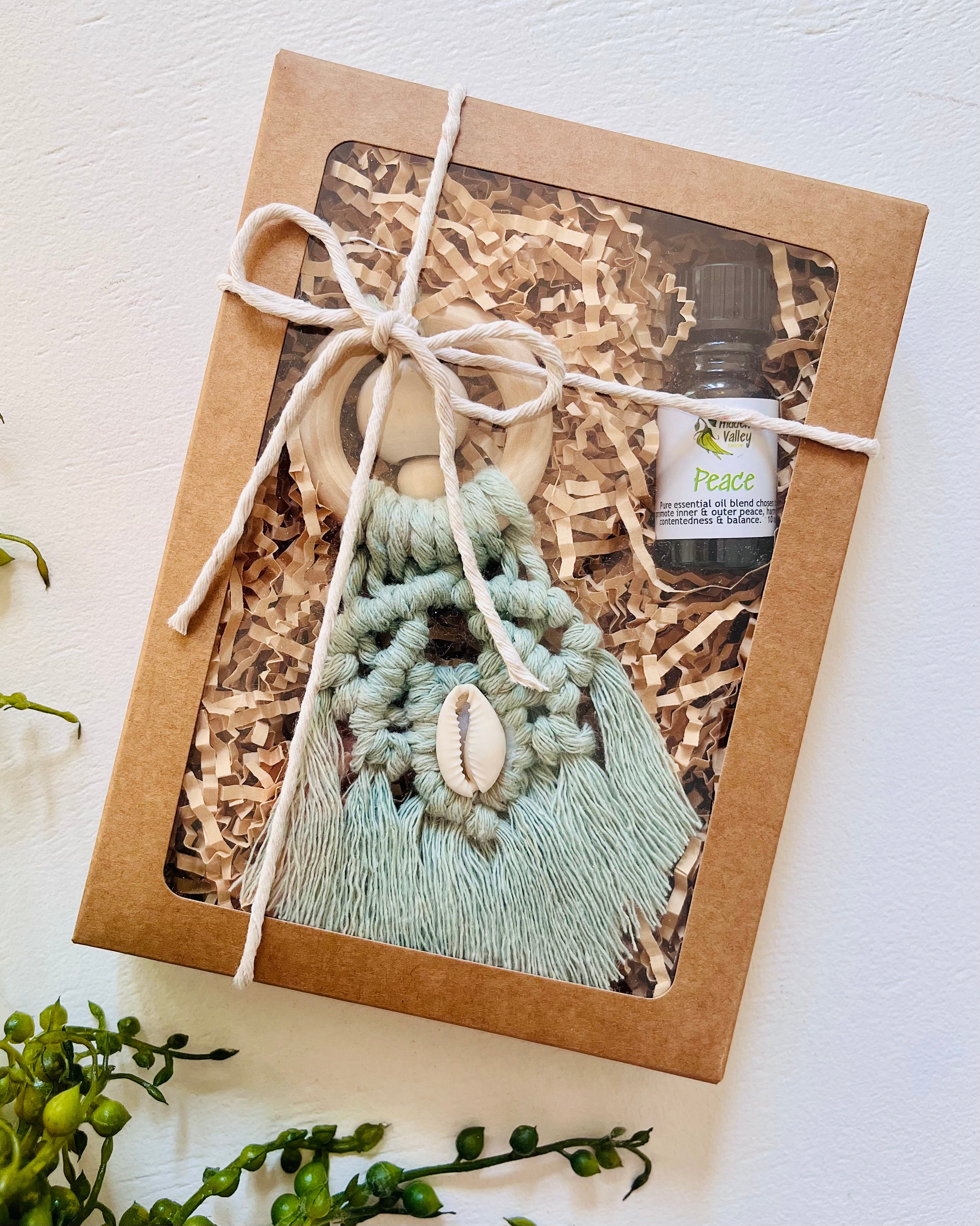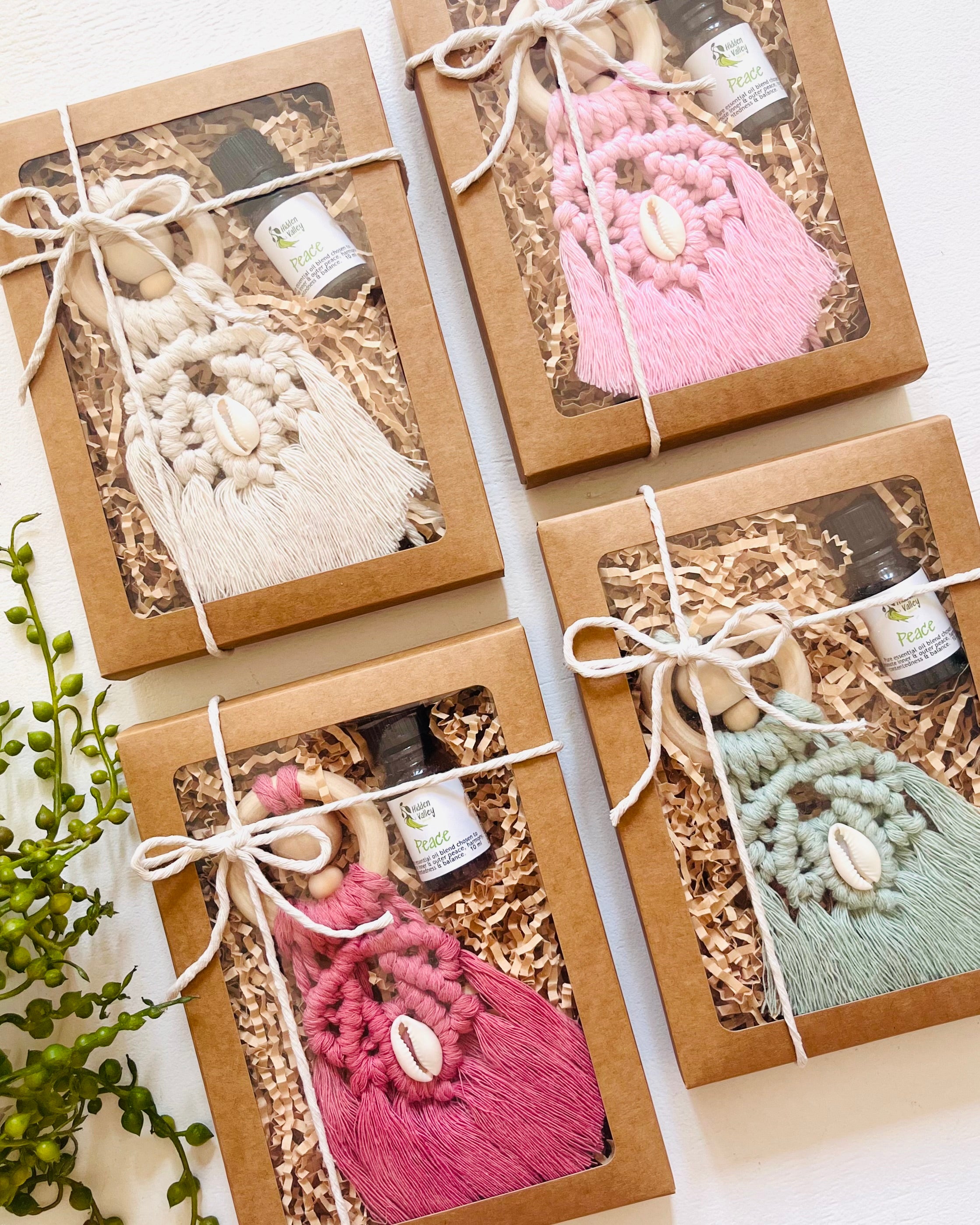 Get your car smelling fresh with this fantastic macrame car diffuser & essential oil blend gift pack. It's the perfect travel accessory for some instant beach feels plus it will get your car smelling fresh instantly!