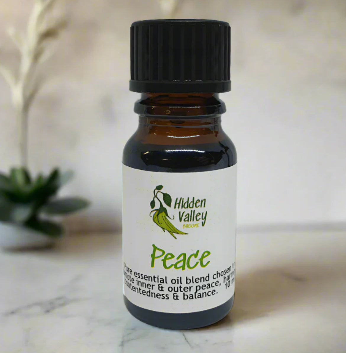 - 10ml Hidden Valley 'Peace' essential oil blend. A gentle calming blend for inner and outer peace.
